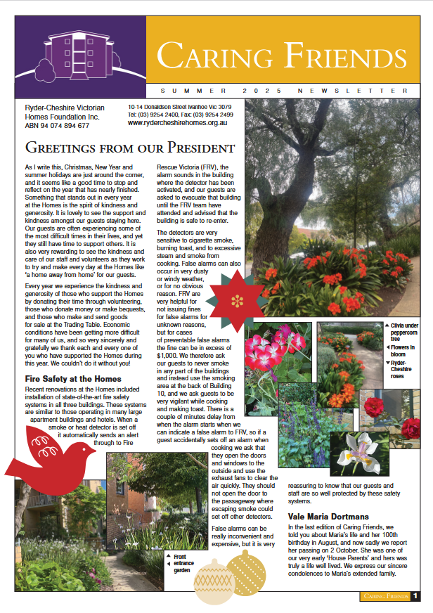 FoEV has been working in the gardens of Ryder Cheshire Homes in Ivanhoe for several years now. Here is their latest newsletter. For a downloadable version scroll to the end.